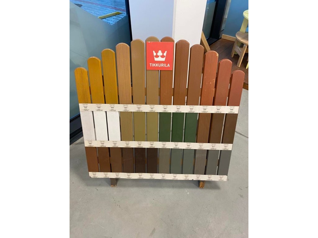 Produkt je dostupný v hotových odstínech (např. Black Ebony, Golden Oak, Mahogany, Natural Pine aj.) a také v široké nabídce tónovaných odstínů podle vzorníku Tikkurila Valtti. Konečný odstín závisí na druhu dřeva, původní barvě a způsobu aplikace.